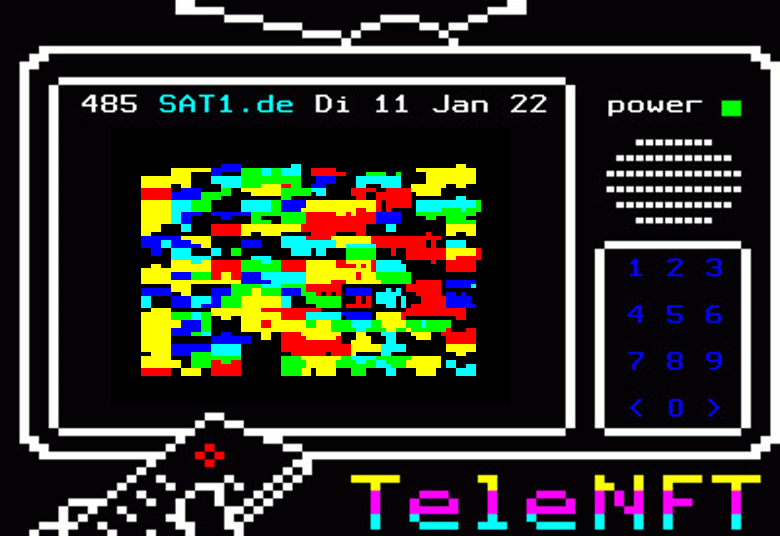 The art exhibition "TeleNFT" questions technological progress in the context of economic and environmental crises. How much time is left? Is technology the salvation? Is art the threat? Our 15 internationally renowned digital artists address these questions with innovative teletext artworks. With only 78x69 pixels, they present motifs ranging from hand-drawn animals to computer-generated patterns. These works immortalized on the blockchain document our zeitgeist, sometimes ironically resigned, sometimes uninhibitedly euphoric, but united in one conviction - now it's up to us.