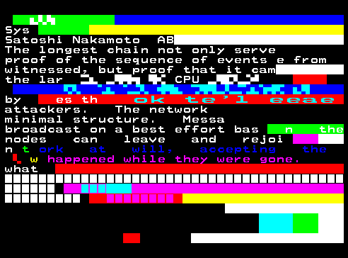The medium is the massage. Fully on-chain teletext art broadcasted on teletext across about:blank#blockedEurope and stored forever on Tezos and Arweave. Included in the permanent collection of Museum Franciscum Carolinum and Museum of Teletext Art.